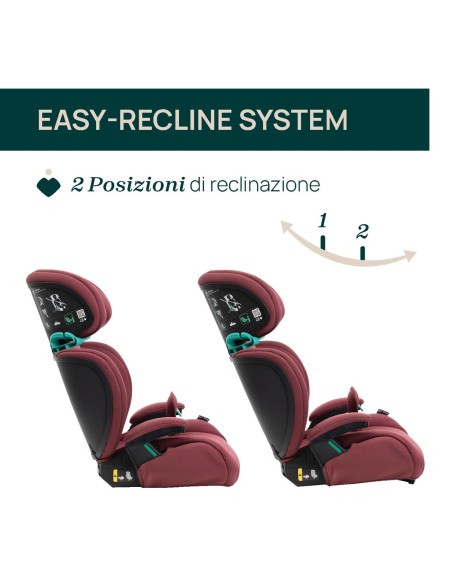 Massimo comfort a bordo grazie alle 2 posizioni di reclinazione, che permettono di personalizzare l'angolo della seduta garantendo un viaggio più rilassante e piacevole per il bambino.