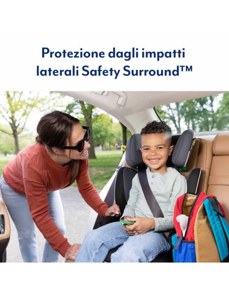 - La protezione dagli impatti laterali Safety Surround™ avvolge il bambino per una maggiore protezione