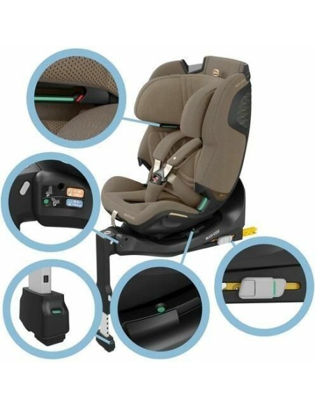 Il seggiolino auto girevole Emerald 360 Pro si distingue per la sua tecnologia FlexiSpin, un sistema che consente al seggiolino di ruotare a 360° con una sola mano, permettendo ai genitori di posizionare facilmente il bambino senza sforzi eccessivi. Il seggiolino può essere ruotato anche verso la portiera, rendendo semplice e pratico l'inserimento del bambino. La base girevole del seggiolino auto Maxi-Cosi Emerald 360 Pro non solo migliora la praticità, ma rende anche più agevole il cambio di direzione del seggiolino quando è necessario.