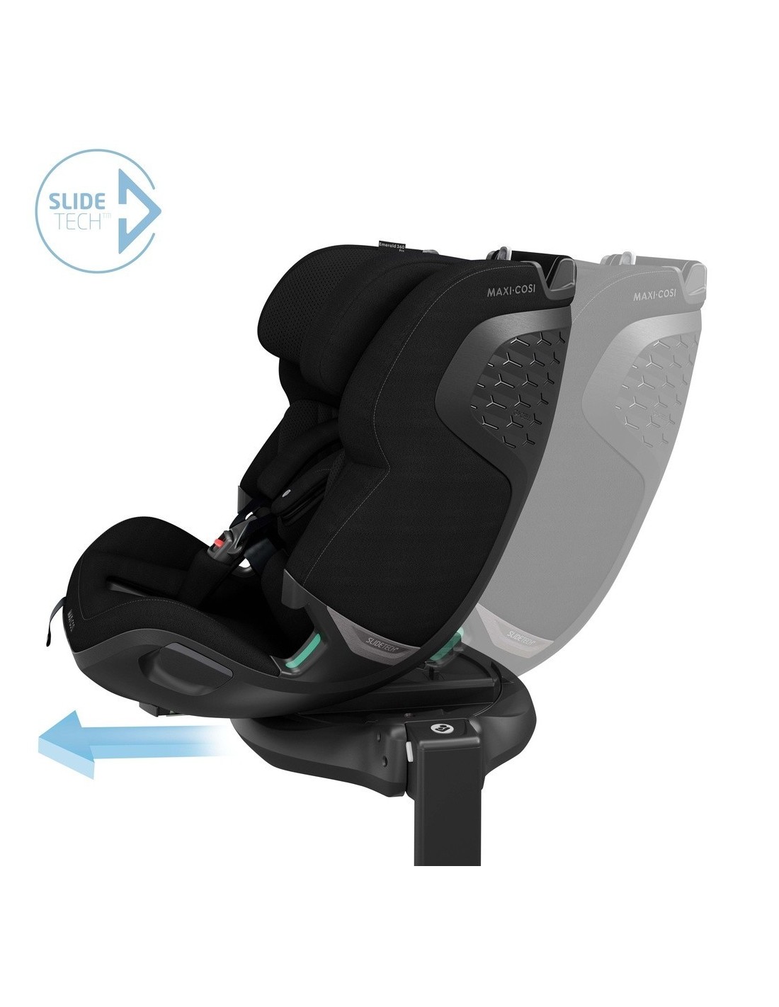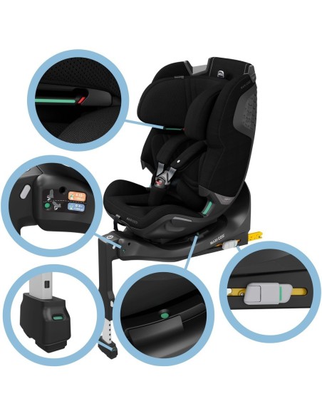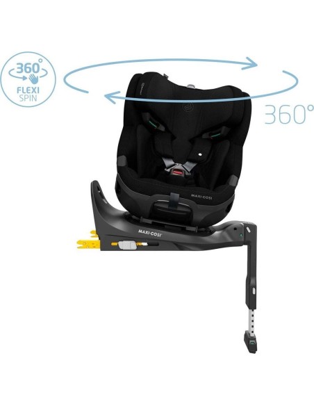 Il seggiolino auto girevole Emerald 360 Pro si distingue per la sua tecnologia FlexiSpin, un sistema che consente al seggiolino di ruotare a 360° con una sola mano, permettendo ai genitori di posizionare facilmente il bambino senza sforzi eccessivi. Il seggiolino può essere ruotato anche verso la portiera, rendendo semplice e pratico l'inserimento del bambino. La base girevole del seggiolino auto Maxi-Cosi Emerald 360 Pro non solo migliora la praticità, ma rende anche più agevole il cambio di direzione del seggiolino quando è necessario.