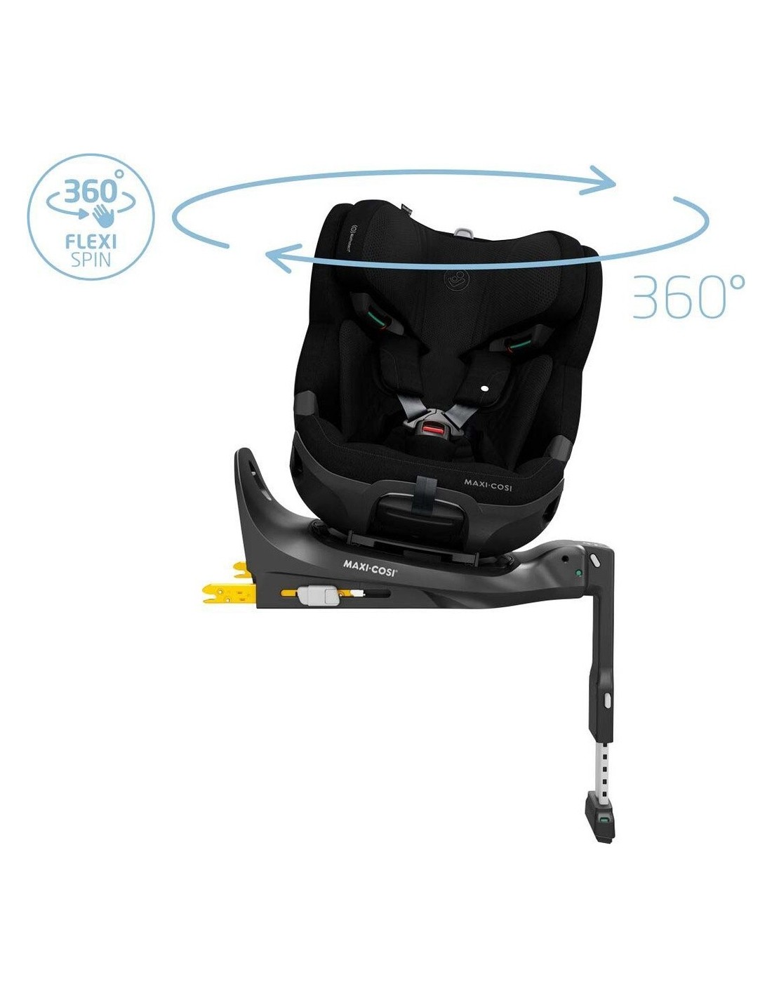 • Base girevole a 360° con tecnologia FlexiSpin (rotazione con una sola mano) per facilitare il posizionamento del bambino e il cambio di direzione