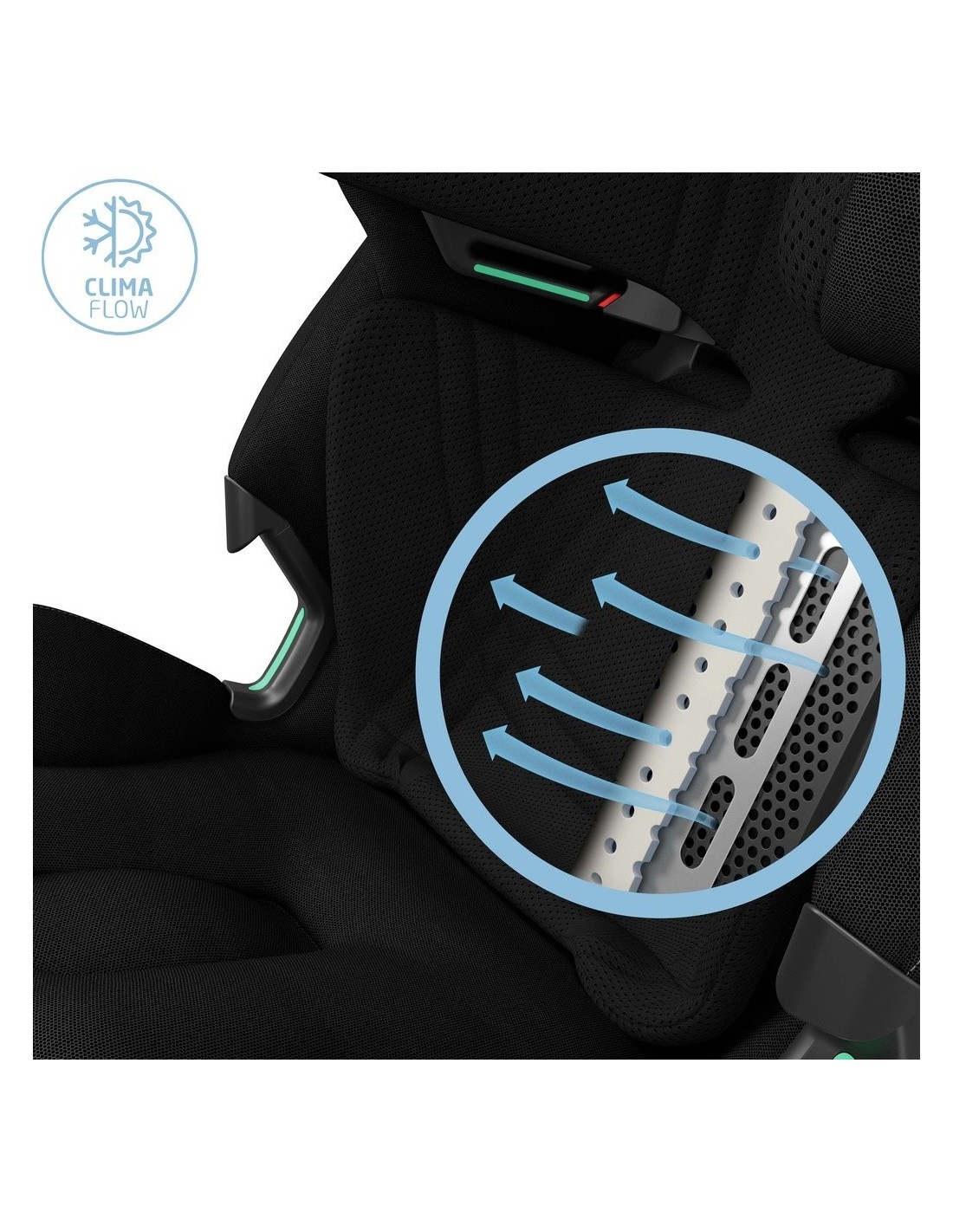 • Schienale reclinabile in più posizioni per garantire comfort durante i viaggi tecnologia ClimaFlow che aiuta a regolare la temperatura del bambino in combinazione con i Tessuti EcoCare ecosostenibili