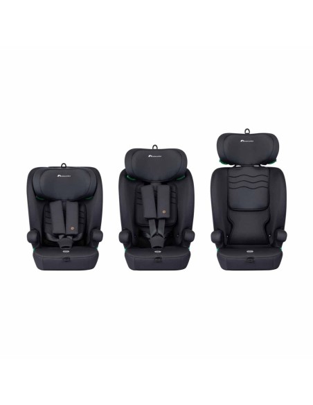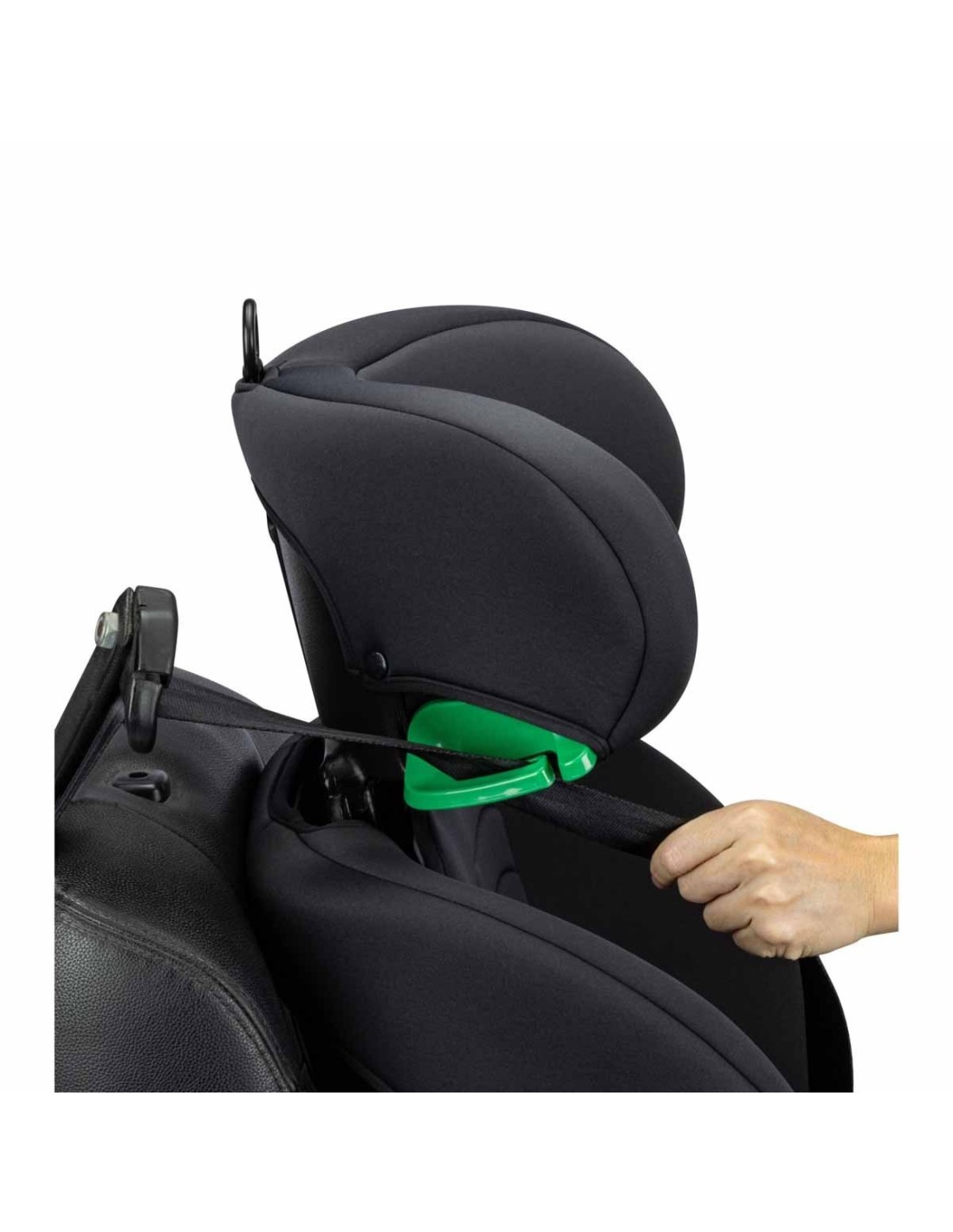 Poggiatesta regolabile in altezza con una mano in 11 posizioni. Non è necessario rimuovere le cinture dal seggiolino, basta riporle nella parte posteriore del seggiolino durante la regolazione per l'utilizzo da 105 cm/circa 4 anni.