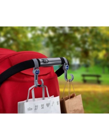Ganci multi uso per trasportare facilmente borse e sacchetti, con aggancio in velcro per tutti i maniglioni e rotazione a 360° per facilitare il trasporto delle tue borse