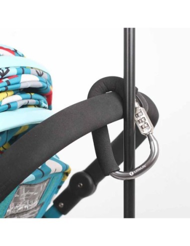 Il lucchetto per passeggini è un aggancio altamente sicuro per passeggini o marsupi progettato per contenere oggetti aggiuntivi. Grazie alla combinazione a 3 cifre, è ideale anche per bloccare i passeggini o i marsupi alle ringhiere o ad altre strutture solide quando si è in giro.