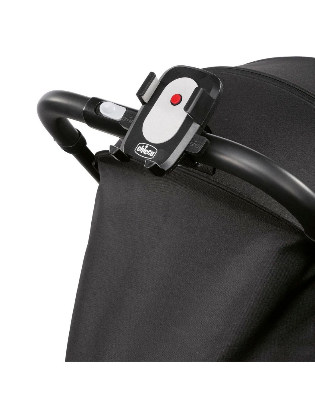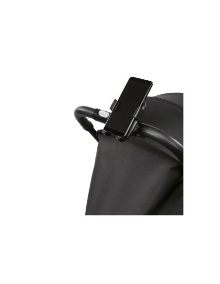 Pratico supporto per cellulare da agganciare al maniglione del passeggino.