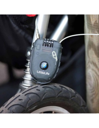 Questo lucchetto con un robusto cavo retrattile e una serratura a quattro cifre, assicura che i trasportini, i passeggini, le carrozzine o i monopattini rimangano al loro posto.