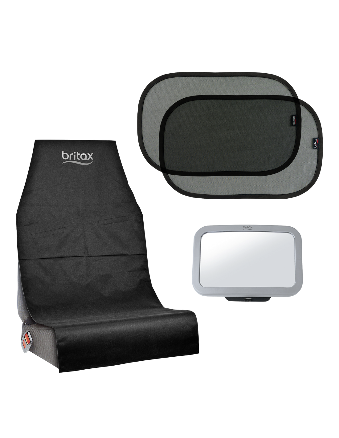 Questo set di accessori è costituito da uno specchietto retrovisore, due tendine parasole EZ-Cling e un coprisedile: praticamente tutto quello di cui hai bisogno quando viaggi con il tuo piccolino all’interno di un seggiolino auto contro il senso di marcia.