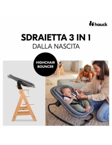 uoi che il tuo bambino sia sempre con te? Grazie agli adattatori inclusi, puoi utilizzare la sdraietta come accessorio per neonati sul tuo seggiolone hauck Alpha+ o Beta+. Con l'adattatore acquistabile separatamente, puoi usare il Highchair Bouncer con l'Arketa. Così il tuo bambino potrà sedersi con te a tavola.