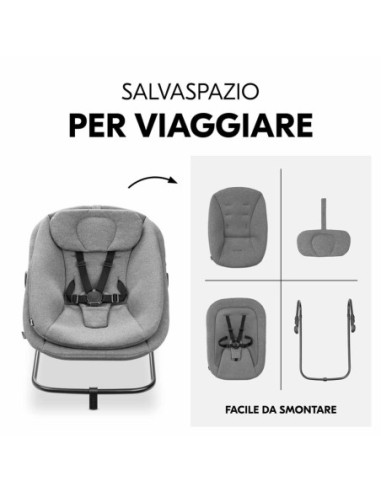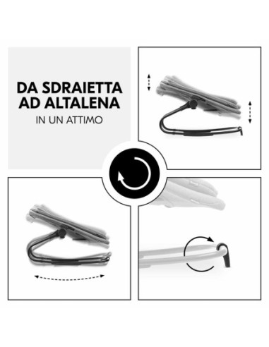 Con un solo gesto puoi trasformare la sdraietta in altalena. Oppure agganciarla al tuo seggiolone. Un prodotto – tre modalità di utilizzo!