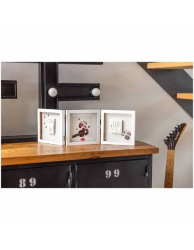 Catturate i momenti magici e preziosi del vostro bambino creando un ricordo unico per l'eternità con questo set versatile. Il design brillante comprende due cornici separate per l'impronta della mano e del piede, oltre a una cornice centrale in cui è possibile inserire qualsiasi foto del vostro piccolo tesoro.