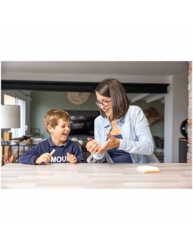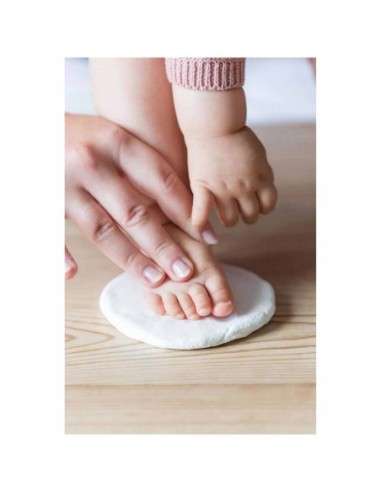 Il set comprende anche tutto il necessario per queste stampe speciali: argilla di alta qualità dermatologicamente testata, un rullo per stendere l'argilla, adesivi decorativi e istruzioni facili da seguire. L'argilla è sicura non solo per la pelle delicata del bambino, ma anche per i genitori, il che garantisce un uso rilassato.