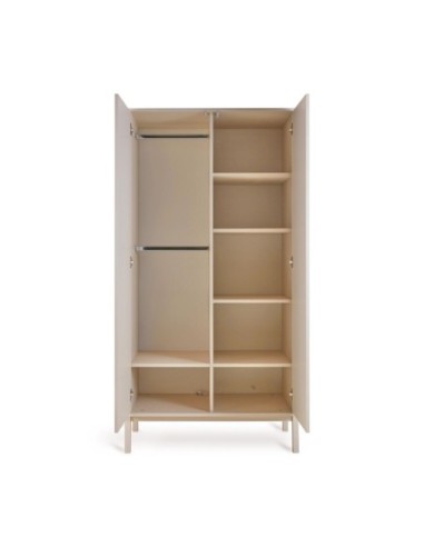 Le due ante a battente dell'armadio si aprono senza sforzo con una leggera spinta, grazie al sistema push-to-open, funzionale ed esteticamente gradevole. È dotato di tre ripiani regolabili e di due aste per abiti, che consentono di ottimizzare e organizzare efficacemente lo spazio di archiviazione.