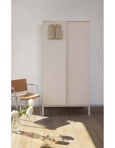 Questo armadio a due ante presenta l'inconfondibile estetica monocromatica della cameretta Ashi, un design minimalista che si integra perfettamente con qualsiasi cameretta moderna.