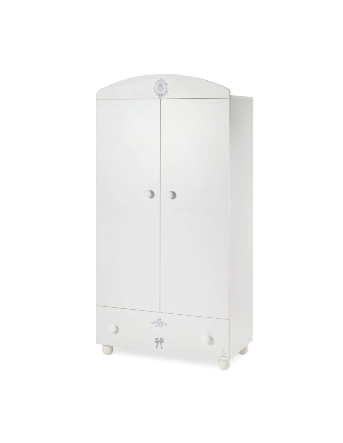 Armadio a due ante che ti permetterà di ordinare e organizzare facilmente i vestiti del tuo piccolo grazie al lato guardaroba e al comodo cassettone. Realizzato con un capiente cassetto che scorre su guide in metallo.