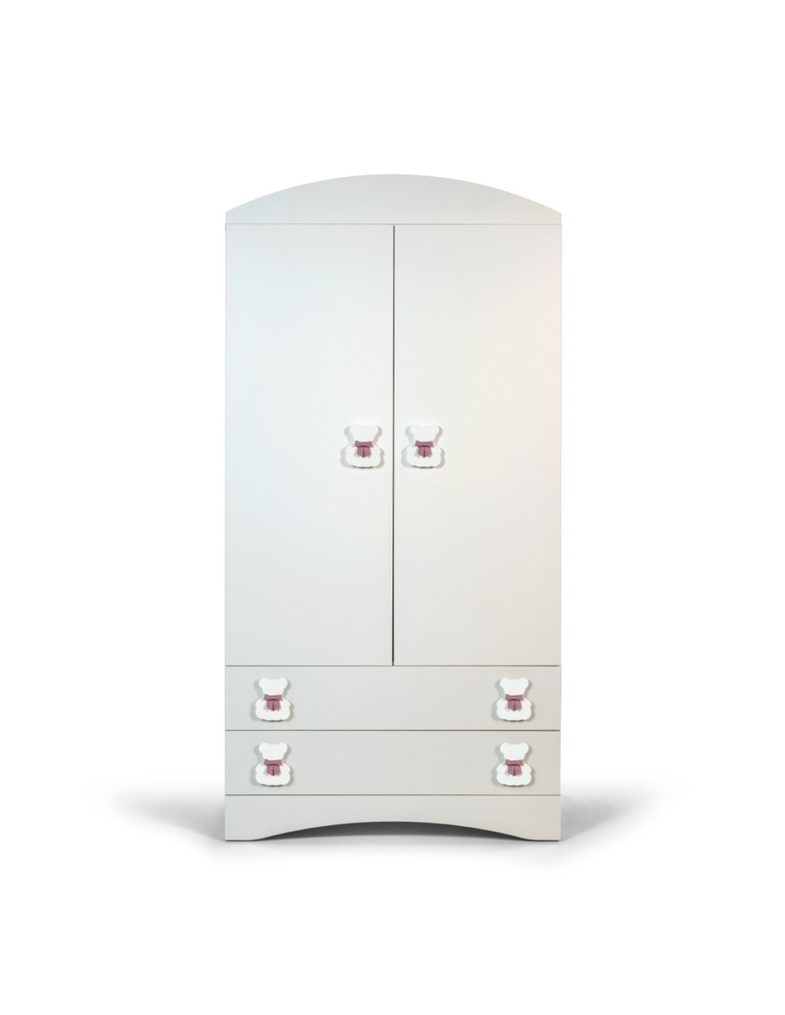Nella parte superiore dell’armadio sono disponibili ampi spazi per appendere abiti, mentre i due cassetti inferiori sono ideali per riporre giochi, biancheria o altri oggetti essenziali. Realizzato con materiali di alta qualità e finiture sicure, questo armadio è pensato per durare nel tempo.
