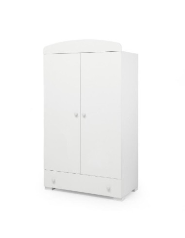 Ampio armadio in truciolare di prima qualità classe E1 a bassa emissione di formaldeide rivestito in PVC; parti posteriori dello stesso sempre in pannello di truciolare e non in faesite per una maggiore stabilità; divisorio interno orizzontale regolabile in altezza, appendiabiti e ampio cassetto esterno.
