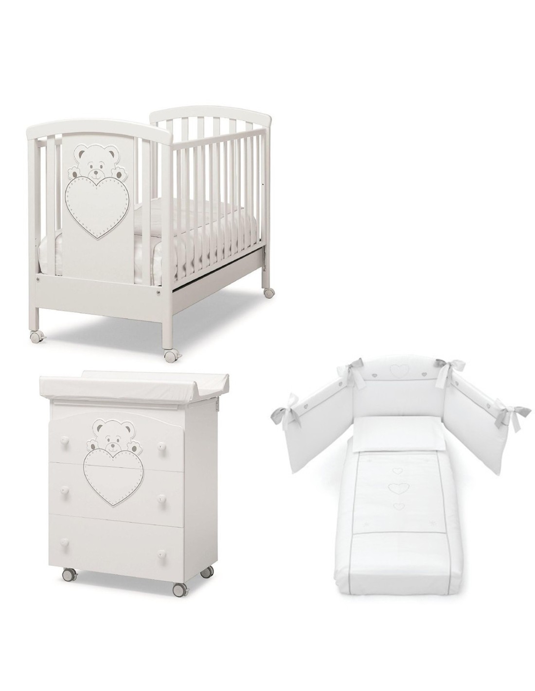 Set di Erbesi che comprende il lettino, il bagnetto e il piumone della collezione Lulù
