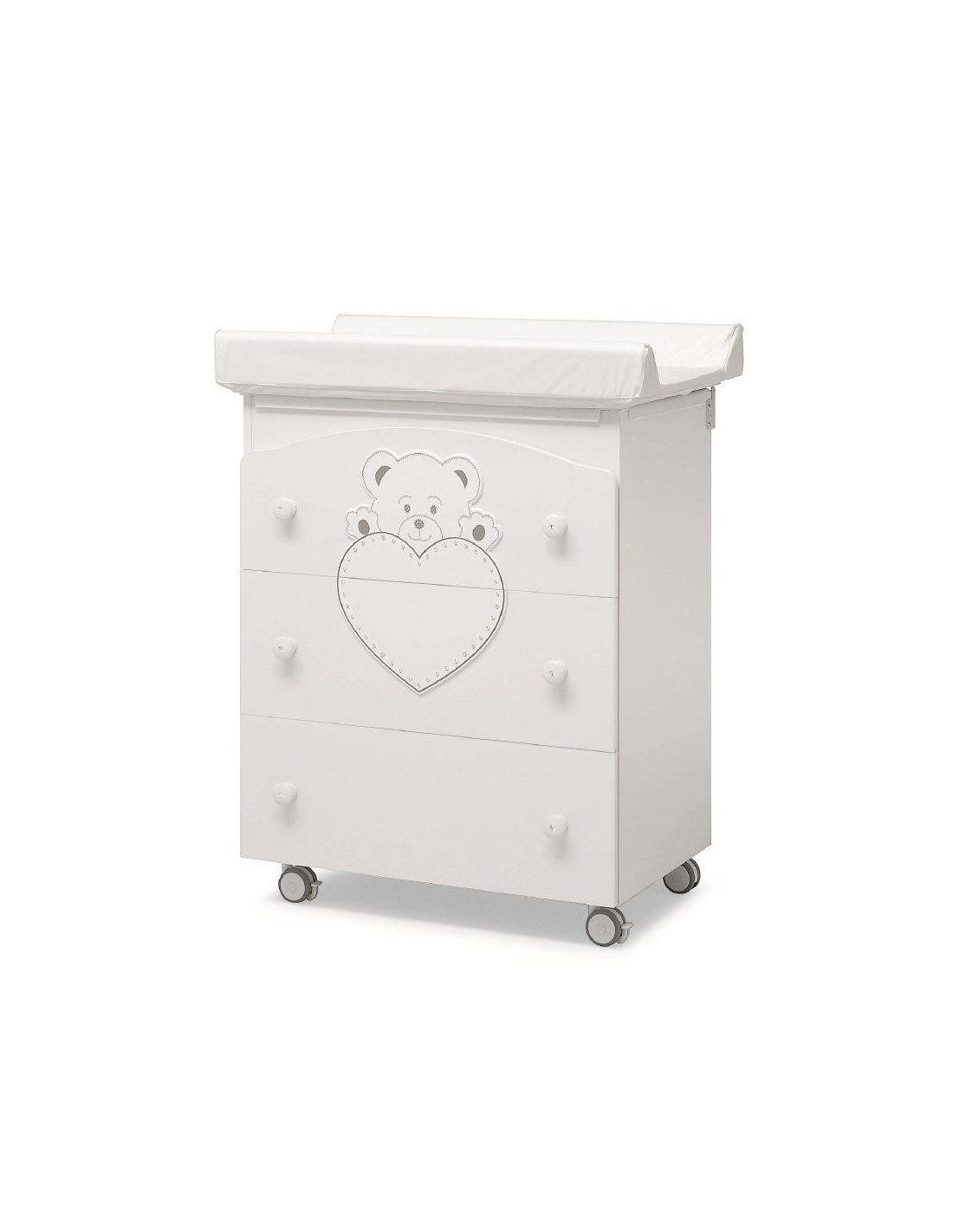 Il Bagnetto Fasciatoio Erbesi Lulù è comprensivo di vaschetta interna estraibile, piano fasciatoio morbido con due spondine sicurezza. Dotato di 4 ruote di cui 2 con freno.