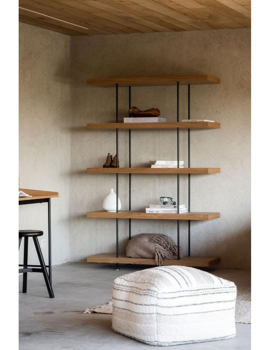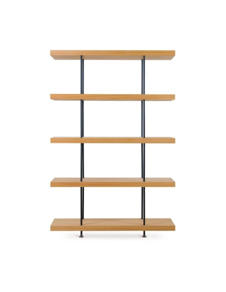 La libreria è dotata di una struttura in acciaio nero che garantisce stabilità e durata, mentre i ripiani in legno sono realizzati in MDF con rivestimento in frassino, certificato FSC. Con dimensioni di 120 cm di larghezza, 180 cm di altezza e 38 cm di profondità, questa libreria offre ampio spazio per tutti i vostri libri preferiti, oggetti decorativi e altro ancora.
