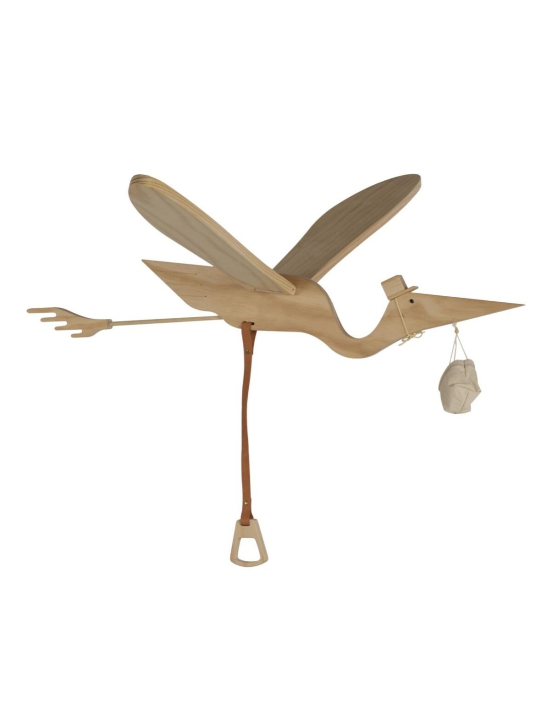 Lasciatevi incantare dall'eleganza del mobile in legno con un grazioso pellicano.