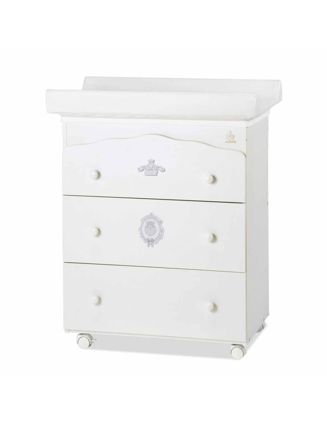 Bagnetto 3 cassetti con piano fasciatoio ribaltabile con cerniera di sicurezza.