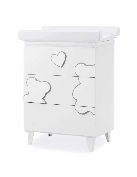 Bagnetto 3 cassetti con piano fasciatoio ribaltabile con cerniera di sicurezza.