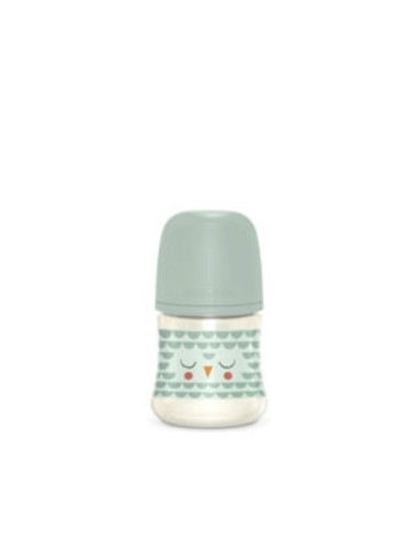 Utilizzabile a partire da 4 mesi d'età, il biberon ha una capienza di 150ml. Il biberon garantisce un flusso adeguato anche con alimenti densi grazie al suo ampio foro a forma di stella.