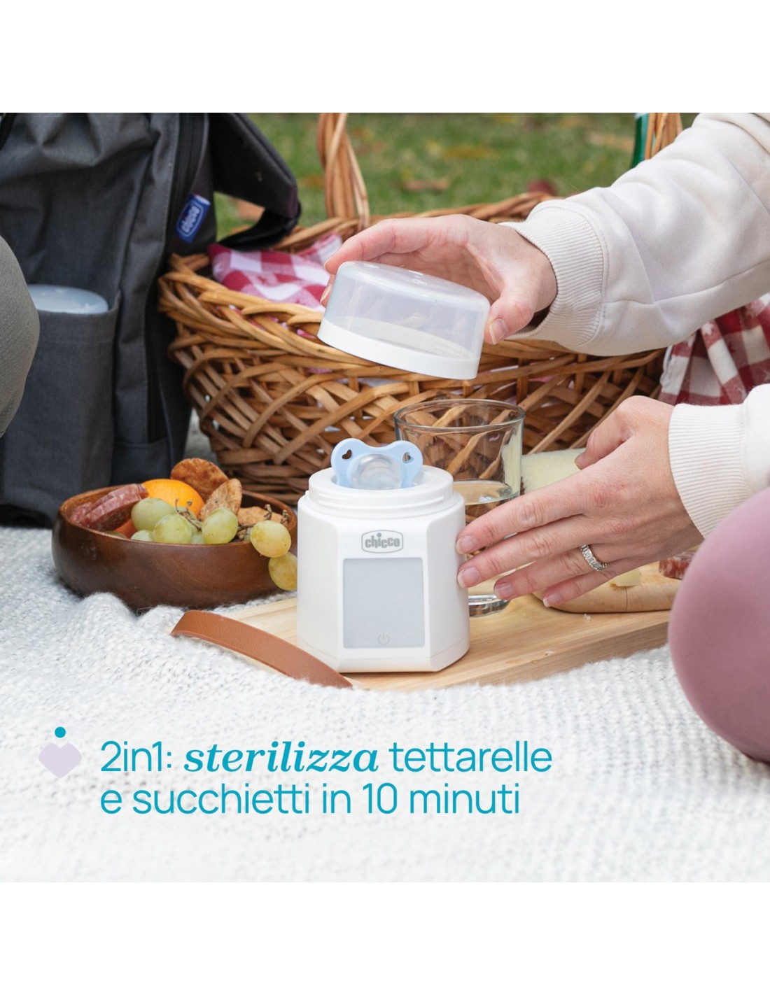 Scalda biberon portatile multifunzionale, leggero e compatto, per riscaldare rapidamente il latte anche fuori casa e sterilizzare piccoli oggetti per bambini.