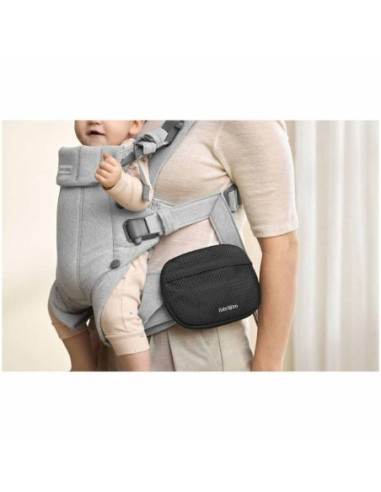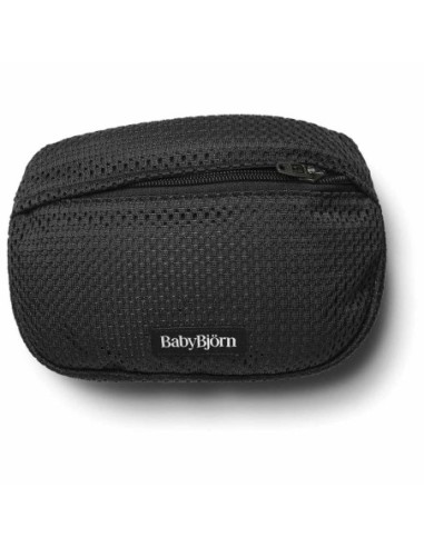 La borsa tascabile per marsupio Babybjörn è realizzata in tessuto a rete nero traspirante e offre un modo pratico per riporre e proteggere i piccoli oggetti in viaggio.