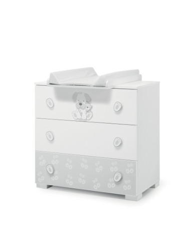 Prolunga e fasciatoio, in dotazione ai nuovi comò, possono essere montati e fissati sul coperchio a sinistra, al centro o a destra per consentire la maggior comodità possibile ai genitori nella fase di cambio dei piccoli.
