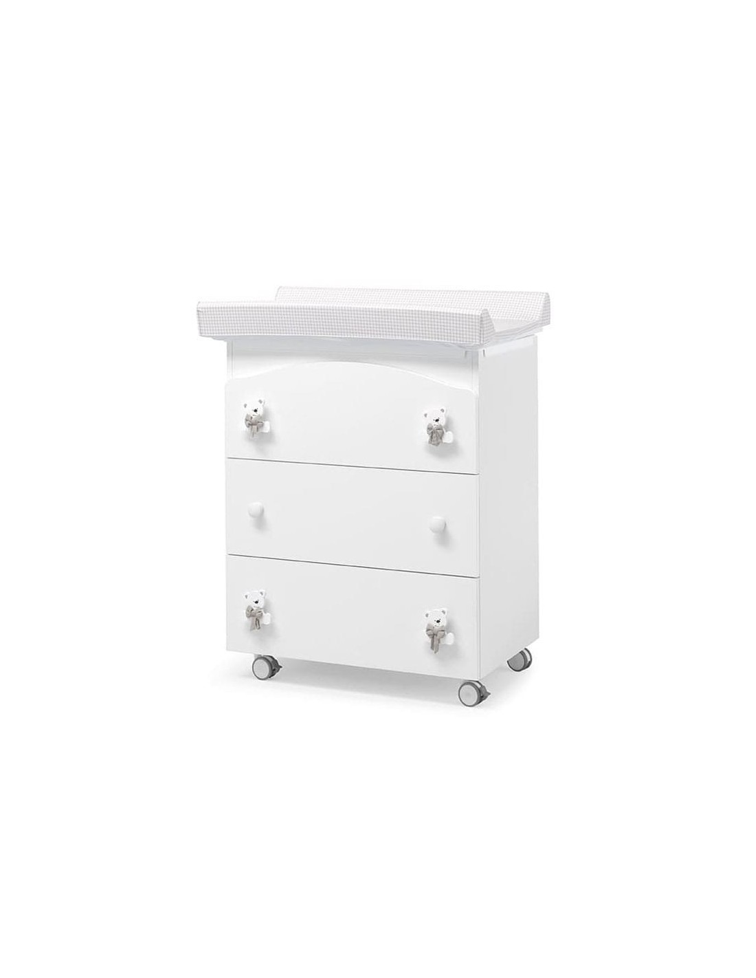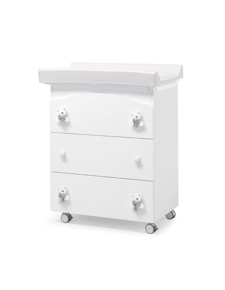 Il bagnetto fasciatoio Tato è dotato di 3 spaziosi cassetti con 6 pomoli, di cui 4 a forma di orsetto,