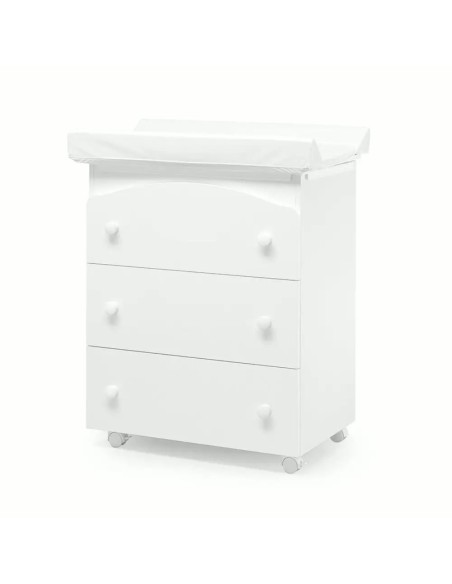 Fornito di un morbido piano fasciatoio per occupare il minor spazio possibile e avere la massima funzionalità in un unico elemento. Comodità e sicurezza per il bagnetto del neonato sono garantite dalla presenza della vaschetta anatomica e antiscivolo, dalle cerniere per il top anticaduta, e dalle quattro ruote piroettanti rivestite da gomma antitraccia, due delle quali con freno, che permettono qualsiasi spostamento.