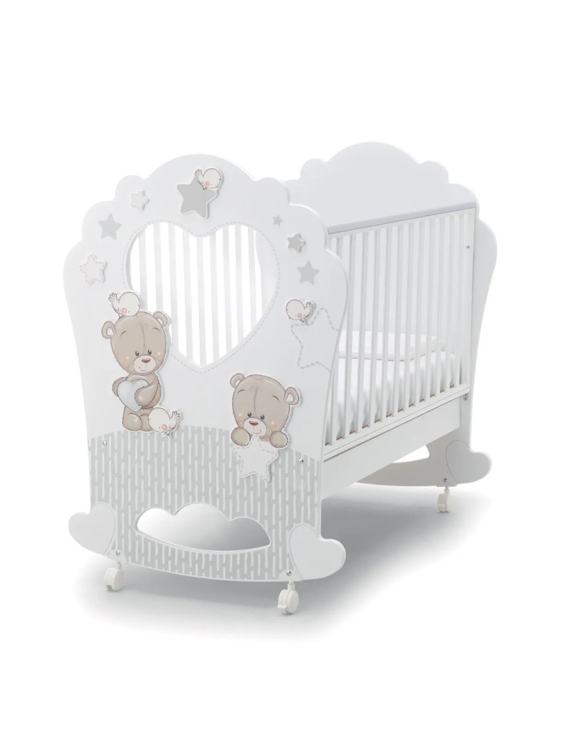 Set cameretta di Azzurra Design che comprende il lettino della linea Love Me Oblò, il bagnetto e il piumone Love Me e il materasso CarezzAloe.