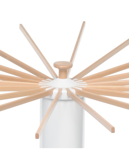 Lo stendipanni Octopus di Foppapedretti è compatto e funzionale. Lo stendino a raggiera ha 18 raggi estraibili indipendenti, in legno massiccio di faggio verniciato naturale.