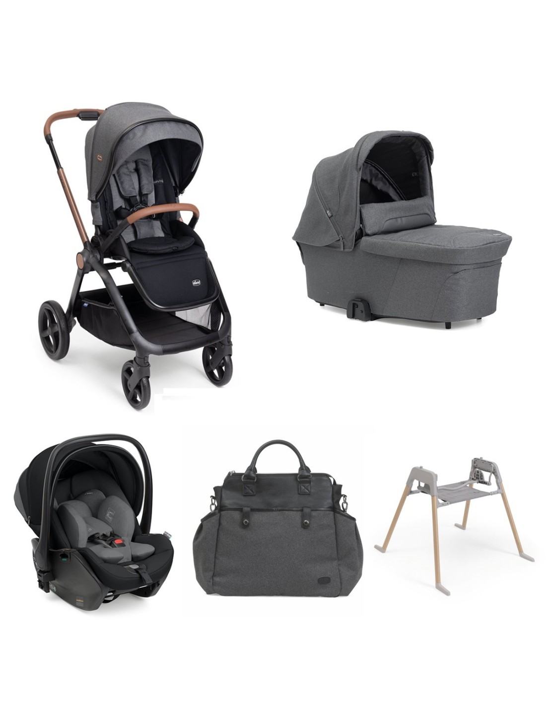 E' realizzato in legno massiccio di faggio verniciato e ha ruote gommate antigraffio, piroettanti e frenanti.