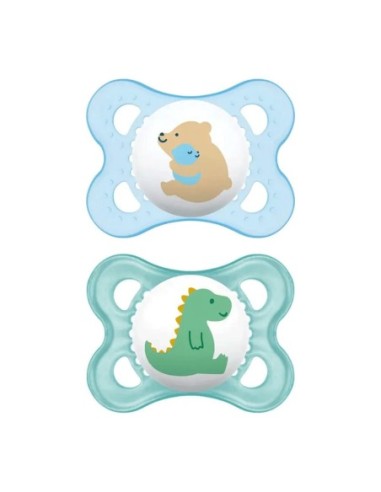 Ciuccio ortodontico MAM Original in silicon. Delicato sulla pelle grazie agli ampi fori di ventilazione e agli incavi della superficie interna, caratteristica esclusiva del design MAM.