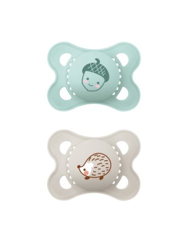 MASCHERINA Forma curva per il massimo comfort. Delicato sulla pelle grazie agli ampi fori di ventilazione e agli incavi della superficie interna, caratteristica esclusiva del design MAM. BOTTONE Facile da afferrare rapidamente. Aggancio clip estremamente semplice. TETTARELLA MAM Forma piatta e simmetrica, che si adatta sempre perfettamente alla bocca del bambino.