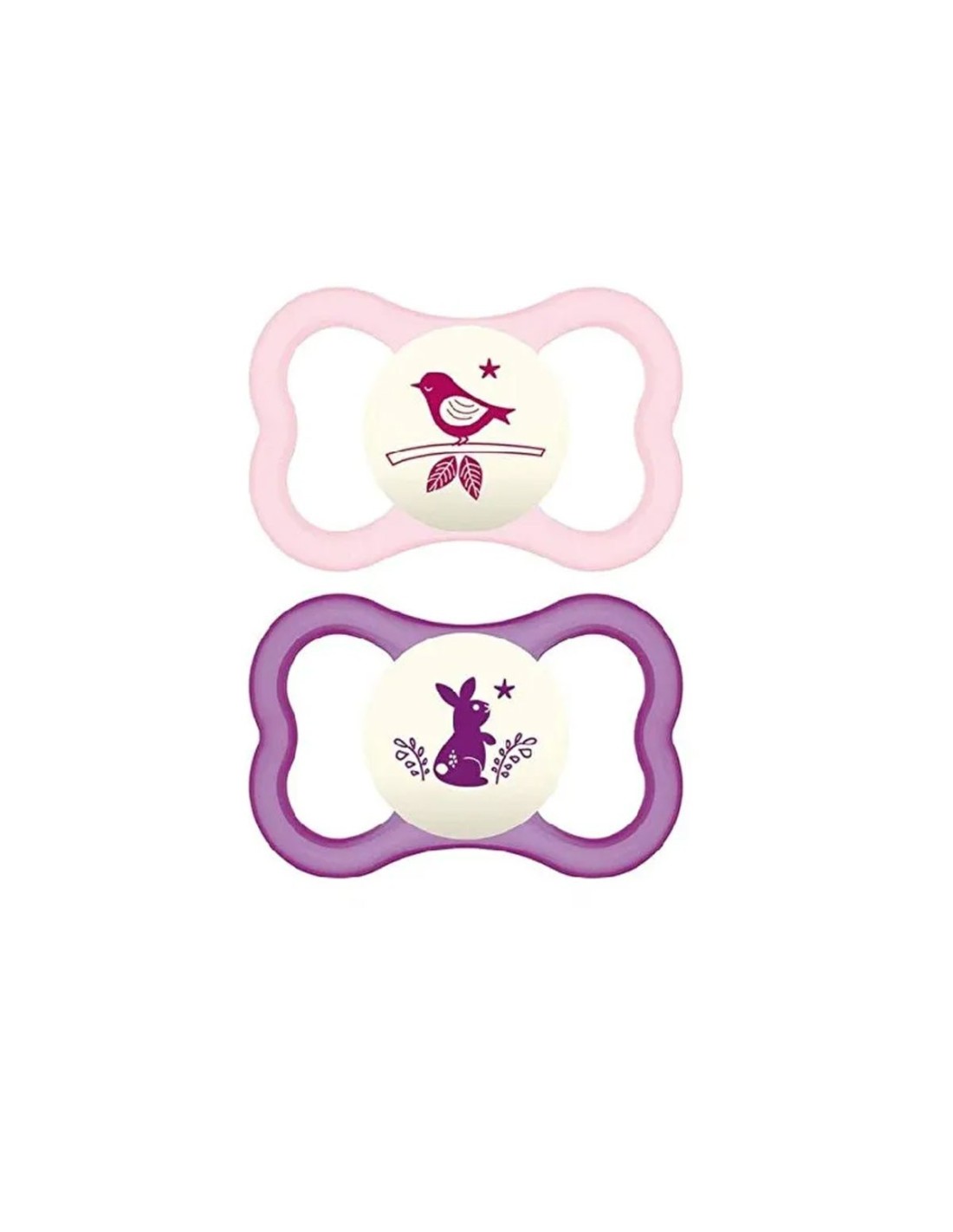 I fori di ventilazione extra-large del ciuccio luminoso MAM Air Night 16+ consentono una maggiore circolazione dell'aria sul viso del bambino. Per questo motivo è particolarmente delicato sulla pelle.