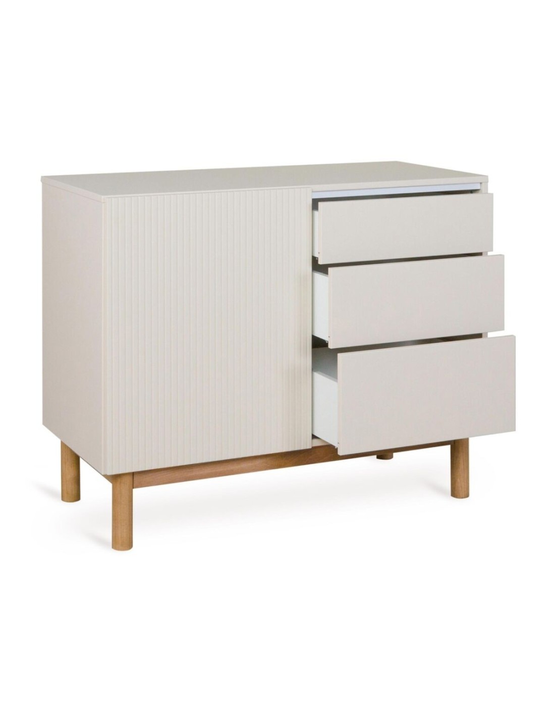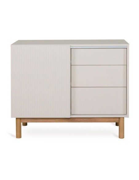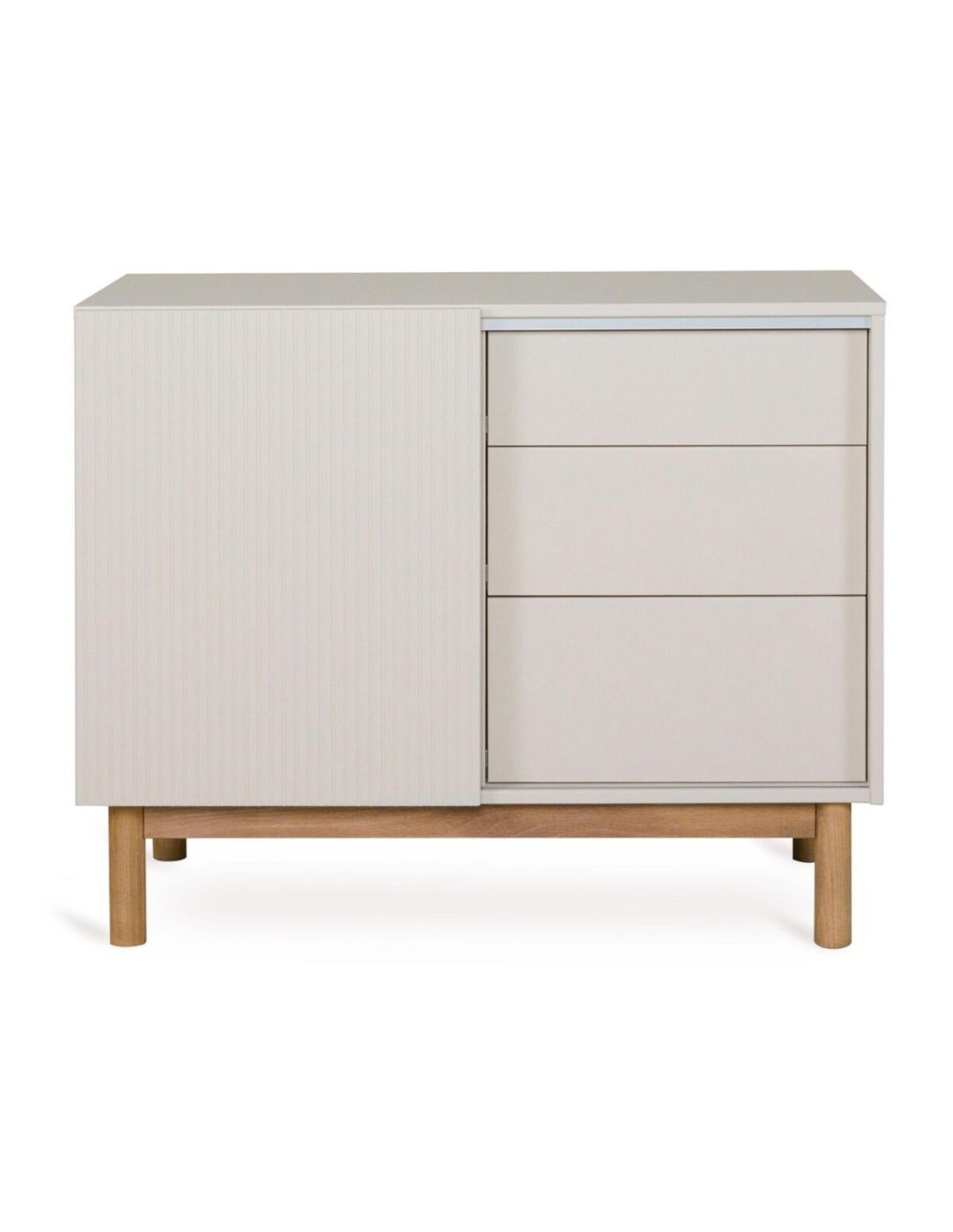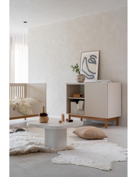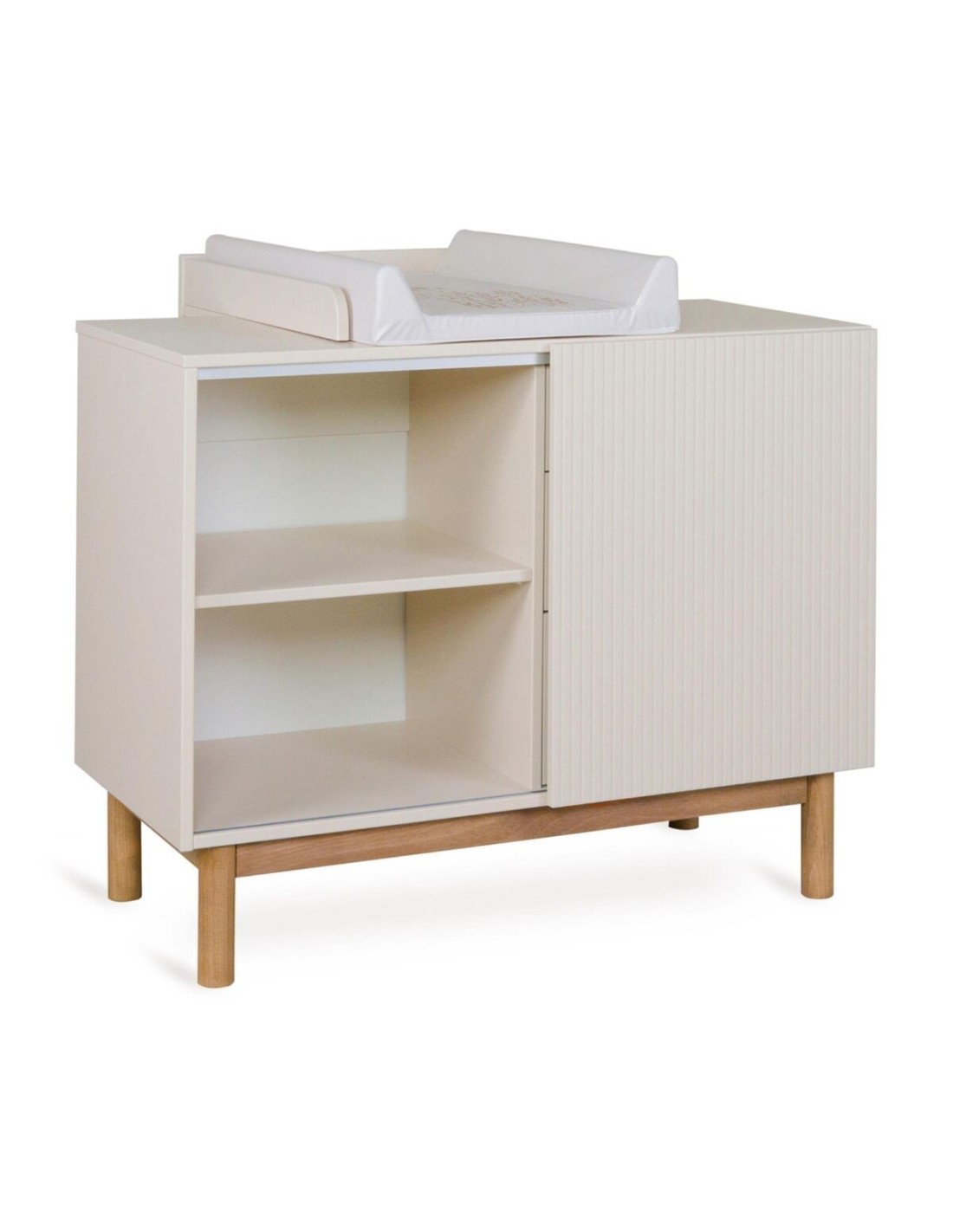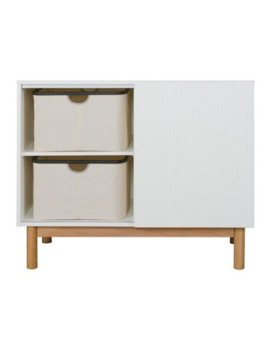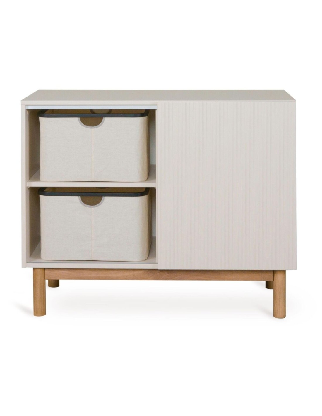 Con un'anta mobile e 3 cassetti, tutti dotati di maniglie invisibili con sistema di spinta, questa cassettiera offre un ampio spazio di 110 x 52 x 90 cm per tutti gli oggetti essenziali del bambino.