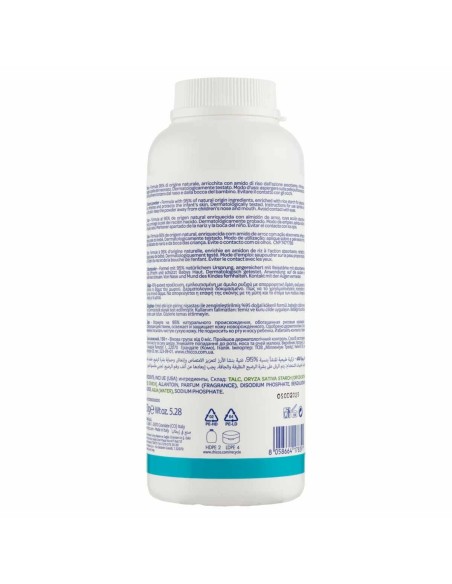 Modo d'uso: aspergere sulla pelle pulita e asciutta. Tenere la polvere lontano dal naso e dalla bocca del bambino. Evitare il contatto con gli occhi.