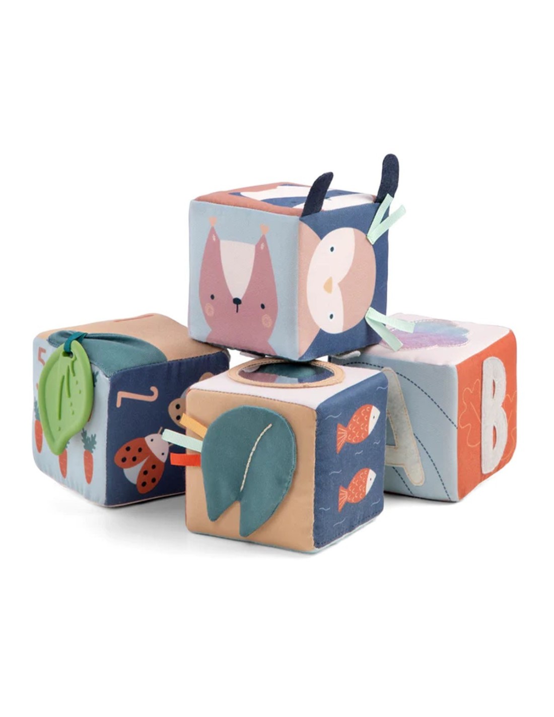 Questi quattro divertenti blocchi sono stati creati per il primo momento di gioco del tuo bambino, per coinvolgerlo, deliziarlo e stimolare la sua curiosità.