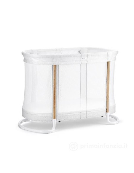La culla Baby Crib di BabyBjörn ha le funzioni di un normale lettino, ma le sue pareti sono realizzate in tessuto mesh traspirante che lo rendono attraente, fresco e sicuro.