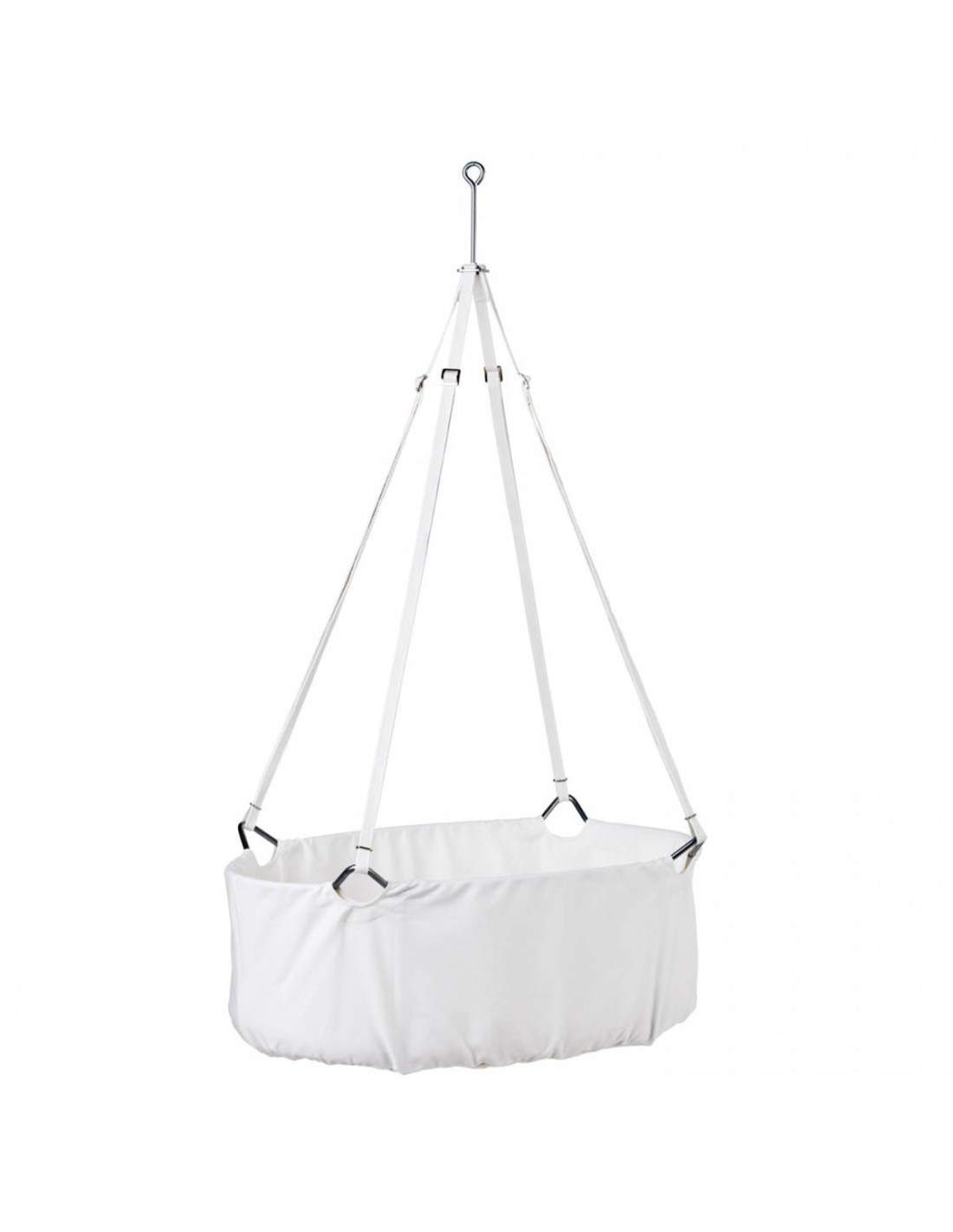 La forma ovale di questa culla racchiude il bimbo e crea uno spazio sicuro attorno a lui.