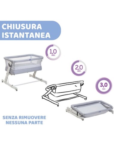 La culla co-sleeping che si chiude in un attimo senza rimuovere nessuna parte, perfetta da portare in viaggio.