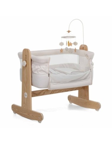 Mamma&Me ha la funzione dondolo integrata e include sia la giostrina in legno sia il materasso.