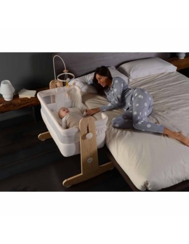 Culla dal design classico e raffinato, ideale per le prime nanne grazie alle funzioni dondolo, co-sleeping e anti-reflusso.