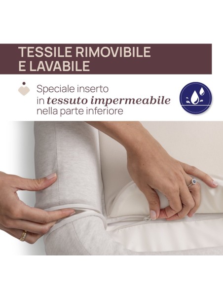 La parte inferiore e quella superiore possono essere facilmente rimosse grazie a una pratica cerniera. I tessuti morbidi possono essere facilmente tolti e lavati.