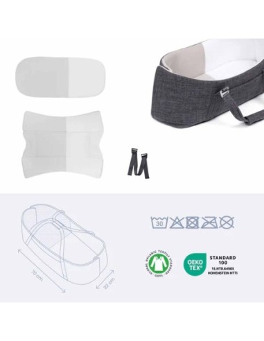 Il Nest'n Go si adatta alla maggior parte dei passeggini con schienale piatto grazie alle cinghie di fissaggio incluse e può essere collocato anche direttamente nella navicella. Fate riposare il vostro bambino nel nido e poi spostatelo in tutta sicurezza nel passeggino.