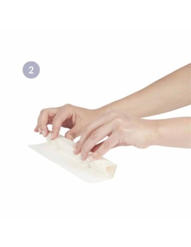 Fase 2: arrotolarlo per formare una cannuccia. Utilizzare le tacche per fissarla.